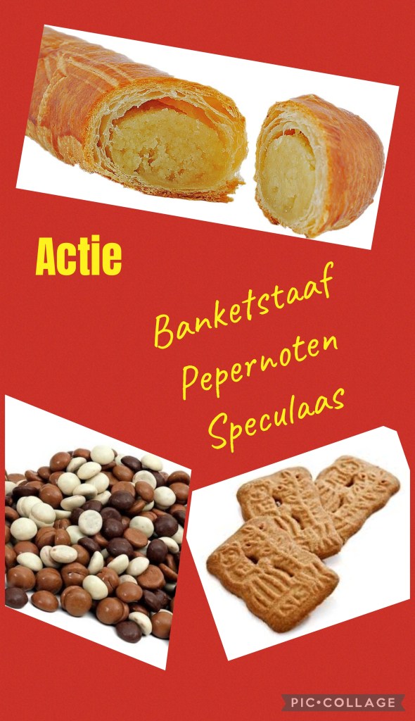 In oktober 2025 heb ik een actie om heerlijke banketstaven, gevulde speculaas, gewone en chocolade pepernoten en speculaas molens te verkopen.